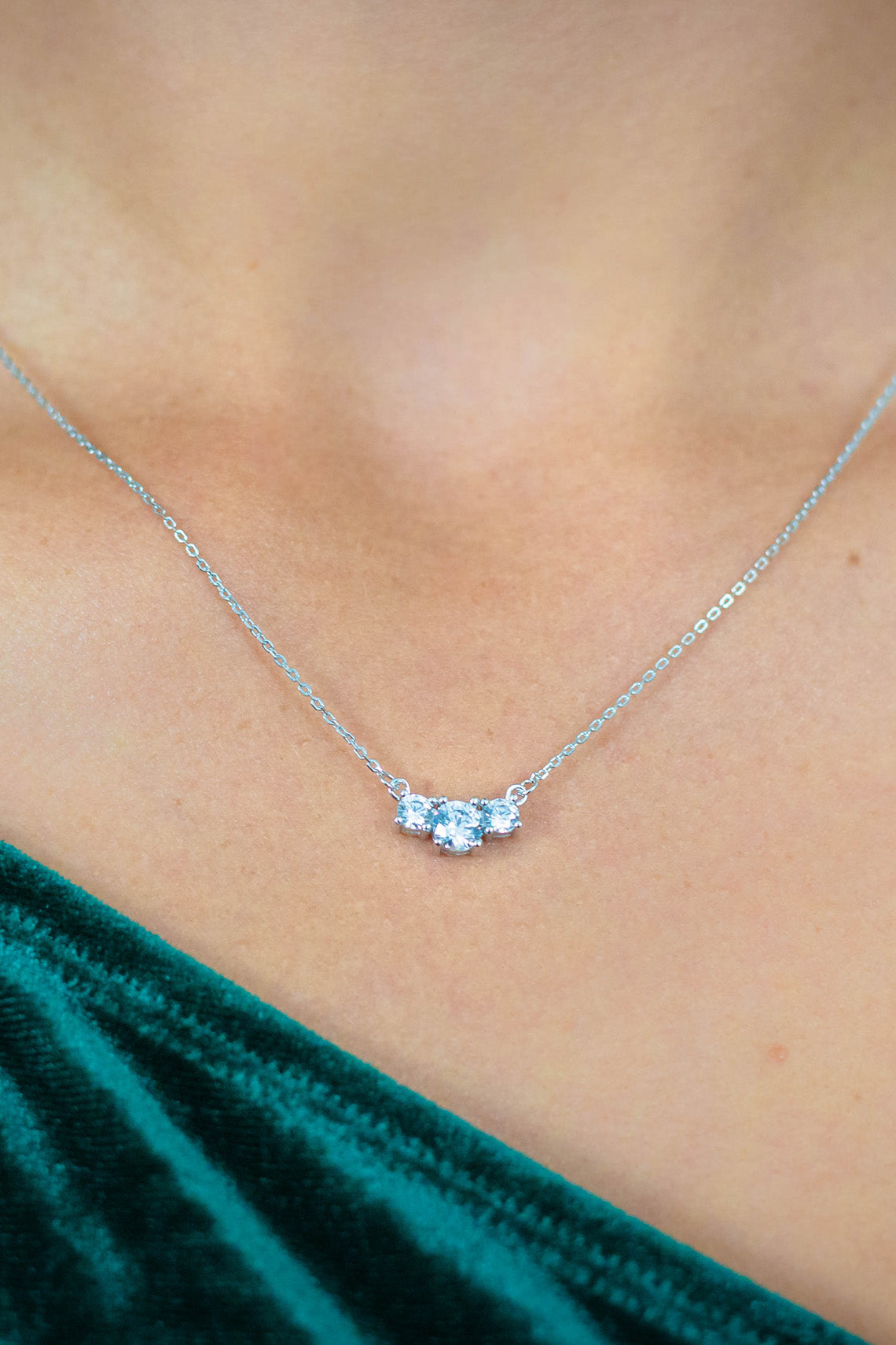 2. **Trilogy Design:** The Trilogy Pendant mirrors the captivating design of the Trilogy Earring. Three brilliant cubic zirconias come together to form a harmonious and dazzling trio, capturing the light beautifully.