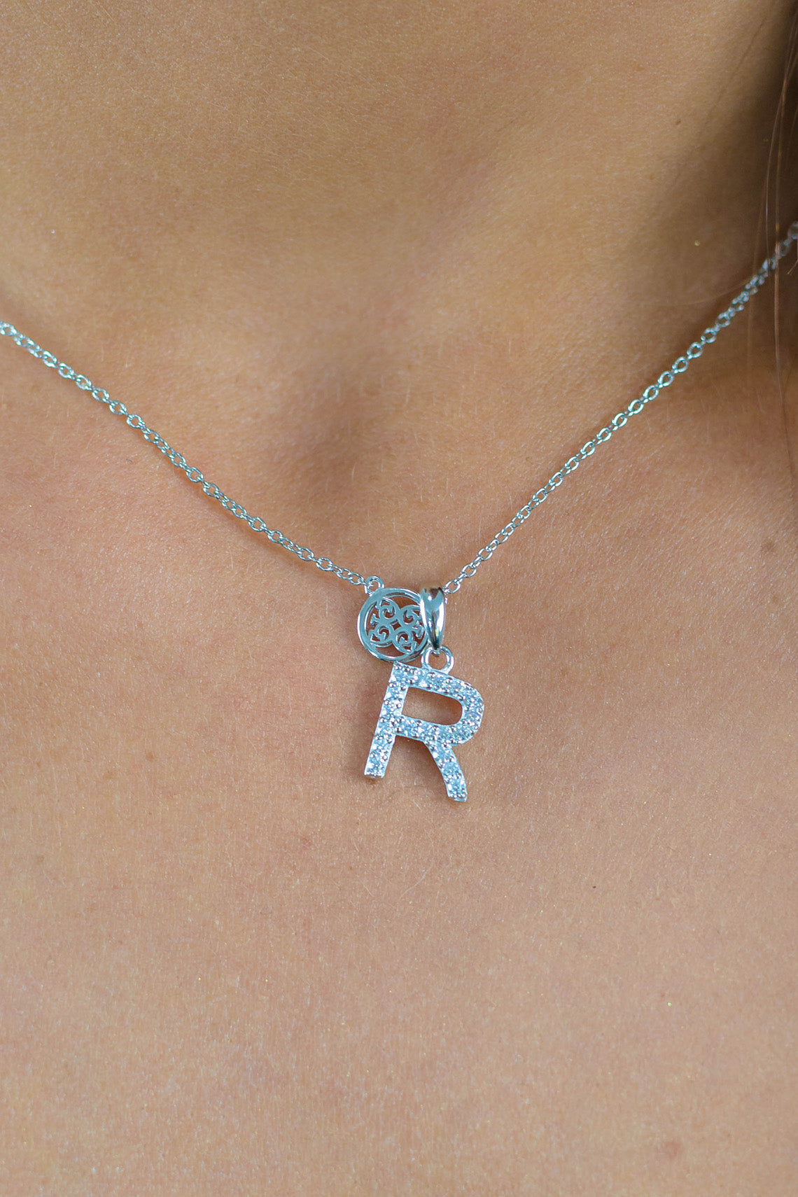 LUXURY LETTERS R INITIAL PENDANT SILVER