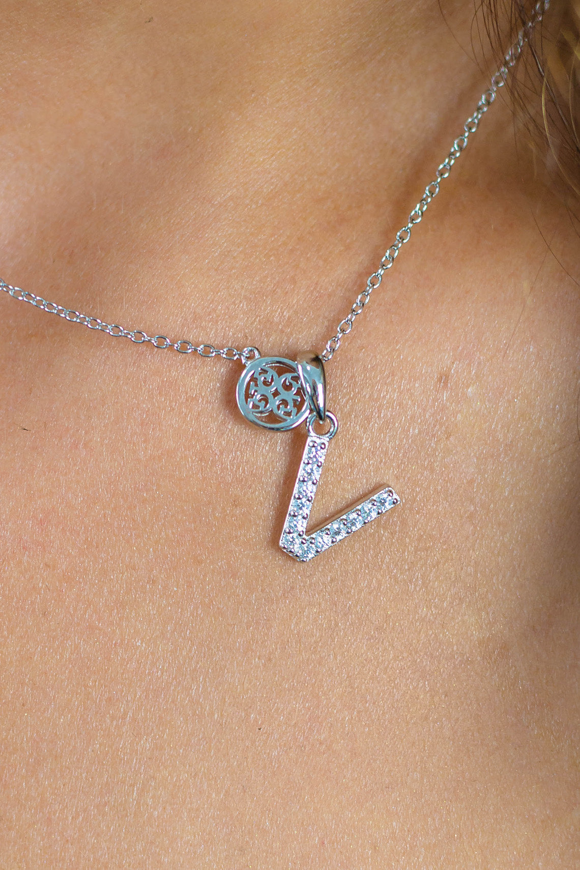 LUXURY LETTERS V INITIAL PENDANT SILVER