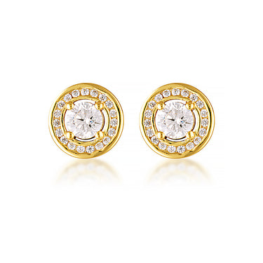 Each earring boasts a delicate halo measuring approximately 7.1mm wide, adorned with brilliant white cubic zirconia stones that create a mesmerising sparkle. At the heart of this celestial halo sits a dazzling 3.5mm cubic zirconia, adding a focal point of brilliance that commands attention.